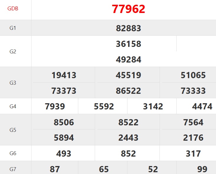 | Ngày | Giải ĐB | Ngày | Giải ĐB | Ngày | Giải ĐB |