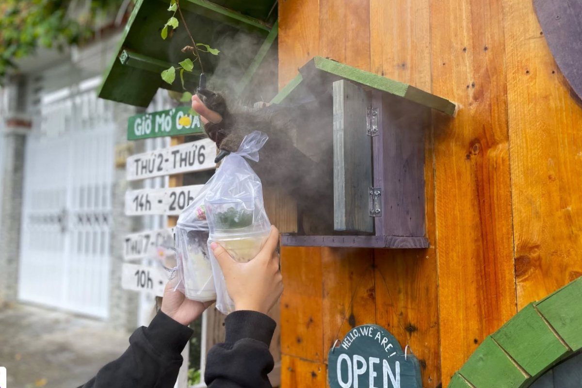 Điểm thu hút của quán nằm ở cách phục vụ “có một không hai”: khách không thấy nhân viên, không trò chuyện, mà chỉ nhận đồ uống qua một ô cửa nhỏ tỏa khói trắng. Khi ô cửa bật mở, một bàn tay bí ẩn sẽ đưa ra ly trà sữa kèm một món quà nhỏ hoặc cử chỉ tương tác như thả tim, vẫy tay khiến ai cũng bật cười thích thú.