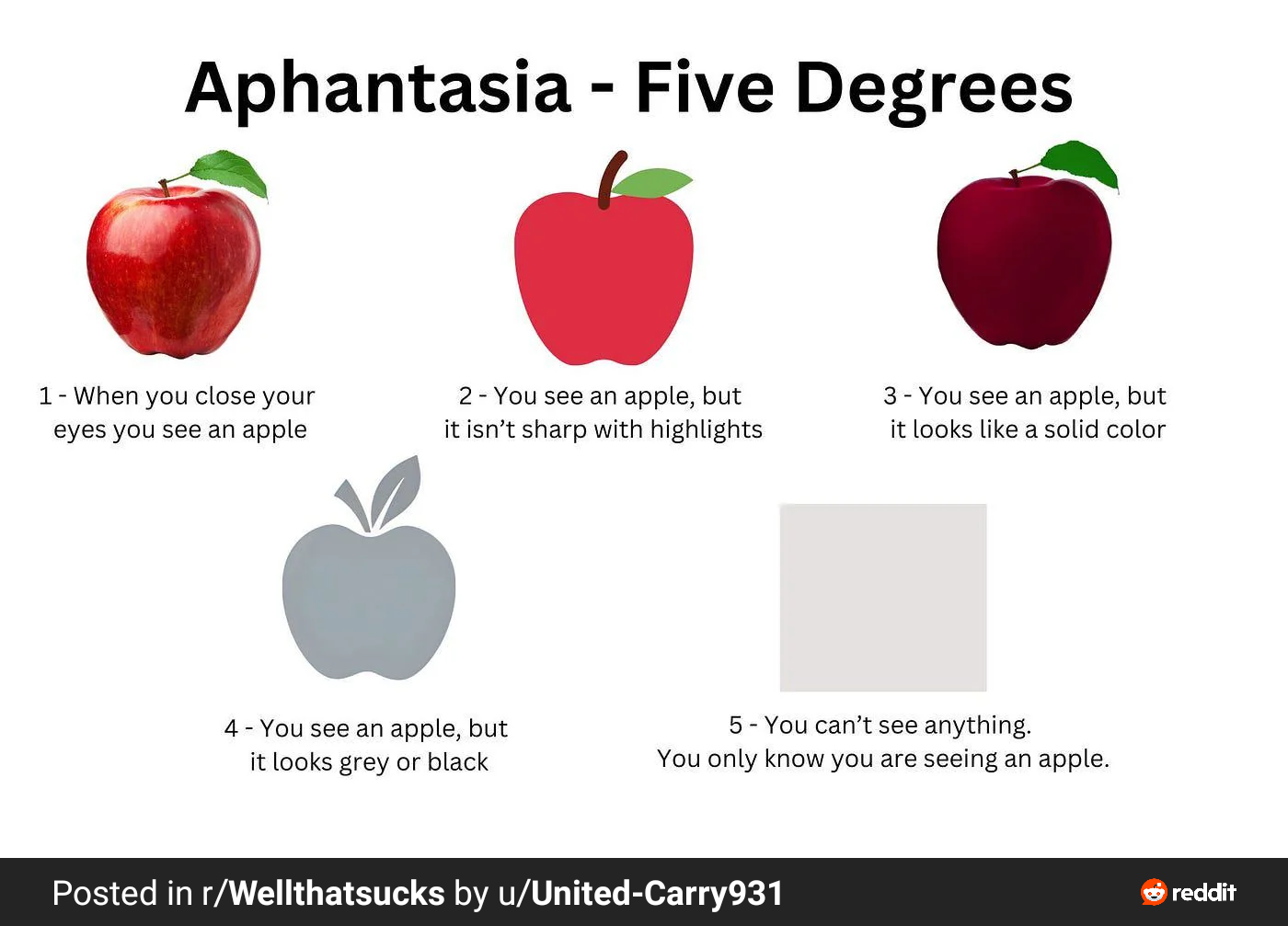 5 mức độ của Aphantasia (mù tâm trí)