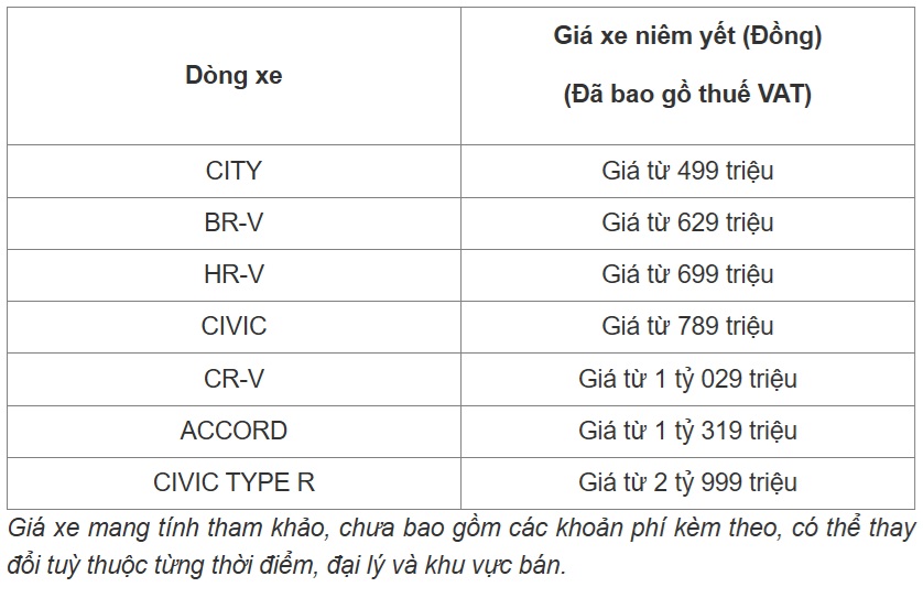 Cập nhật bảng giá xe ô tô Honda mới nhất tại Việt Nam tháng 11/2025 chi tiết trong bài viết dưới đây.