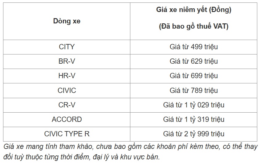 Bảng giá xe ô tô Honda mới nhất tại Việt Nam tháng 12/2025 sẽ được cập nhật chi tiết trong bài viết dưới đây.