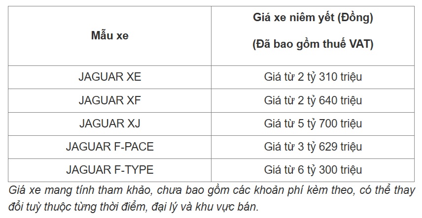 Bảng giá xe ô tô Jaguar mới nhất tại Việt Nam tháng 12/2025 sẽ được cập nhật chi tiết trong bài viết dưới đây.