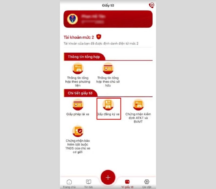 Bước 1: Mở ứng dụng và vào mục Ví giấy tờ.