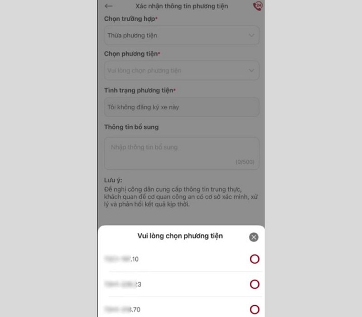 Bước 4: Chọn mục Xác nhận thông tin phương tiện.