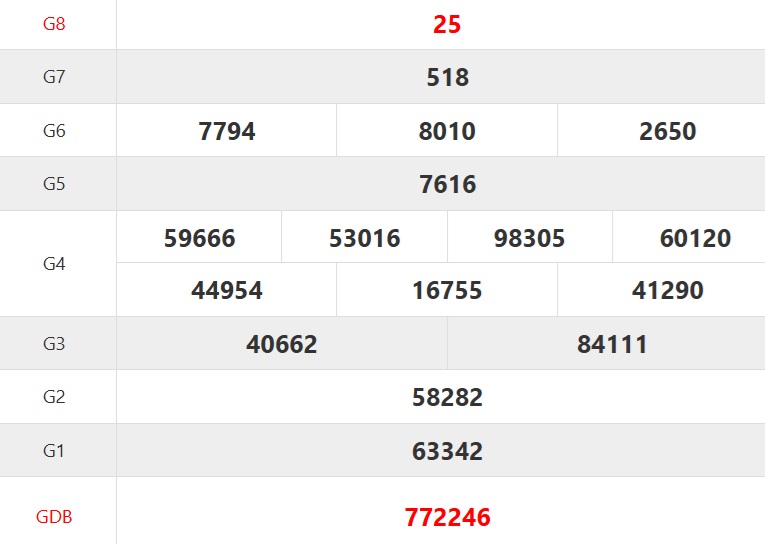 ⭐️ Giải tám: 25 |
