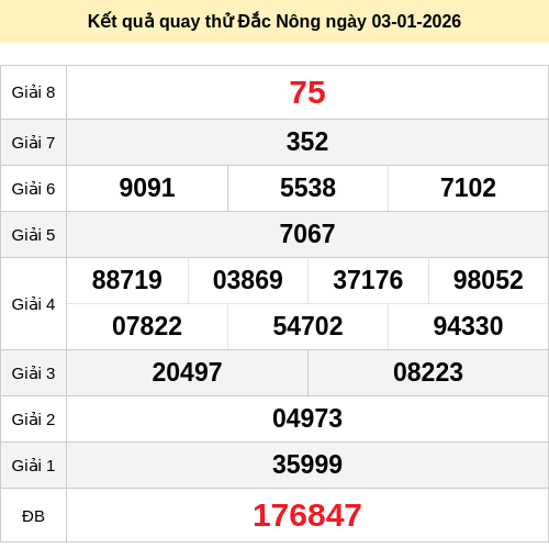1. Thống kê lô tô Đắk Nông ngày 03/01/2026 để phân tích