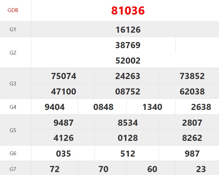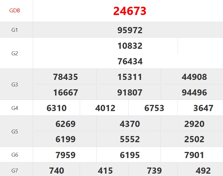 | Ngày | Giải ĐB | Ngày | Giải ĐB | Ngày | Giải ĐB |