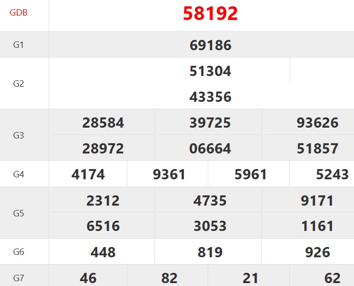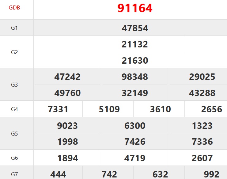 | Ngày | Giải ĐB | Ngày | Giải ĐB | Ngày | Giải ĐB |