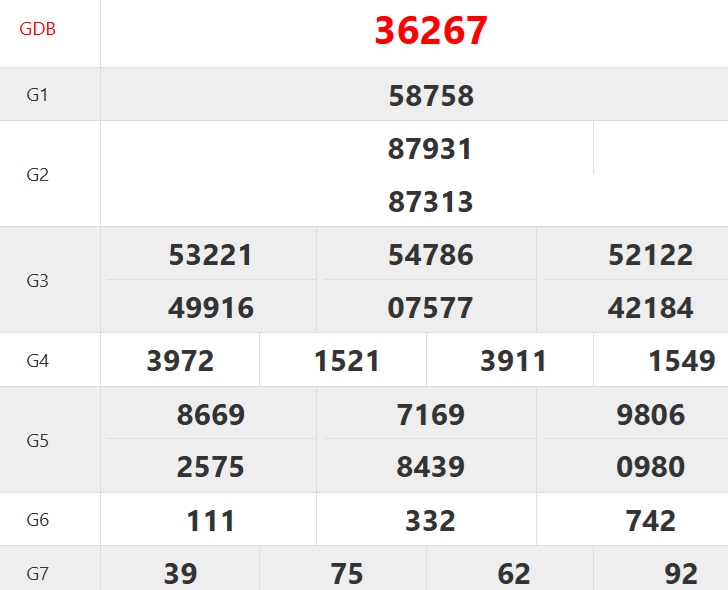 | Ngày | Giải ĐB | Ngày | Giải ĐB | Ngày | Giải ĐB |