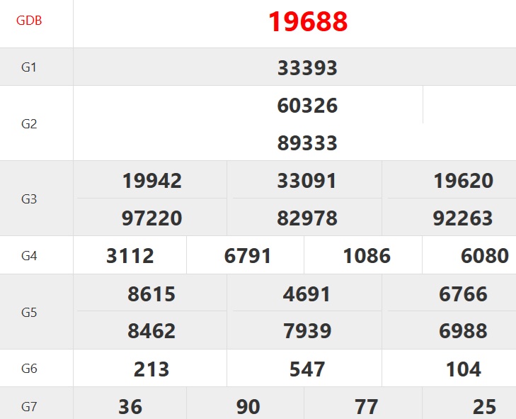 | Ngày | Giải ĐB | Ngày | Giải ĐB | Ngày | Giải ĐB |