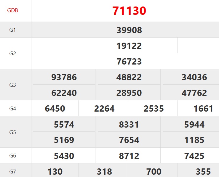 | Ngày | Giải ĐB | Ngày | Giải ĐB | Ngày | Giải ĐB |