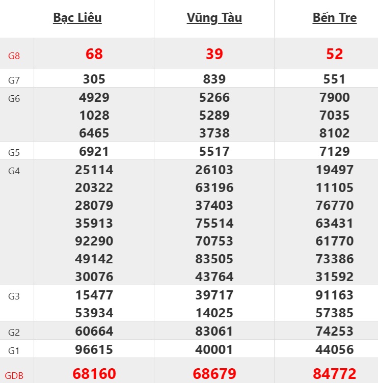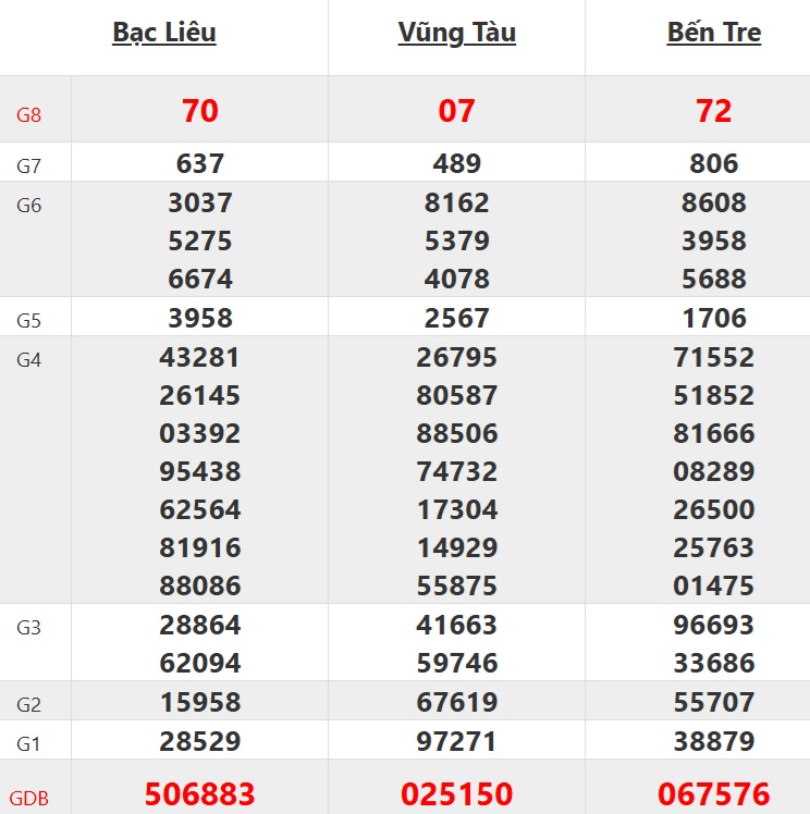 Dự đoán XSMN Thứ ba ngày 07/10/2025, 3 đài: Bạc Liêu, Vũng Tàu, Bến Tre