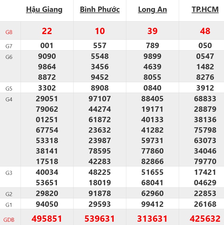 Dự đoán XSMN Thứ bảy ngày 08/11/2025, 4 đài: Hậu Giang, Bình Phước, Long An, TP Hồ Chí Minh