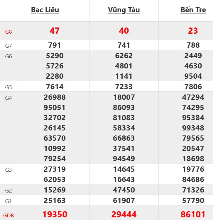 Dự đoán XSMN Thứ ba ngày 14/10/2025, 3 đài: Bạc Liêu, Vũng Tàu, Bến Tre
