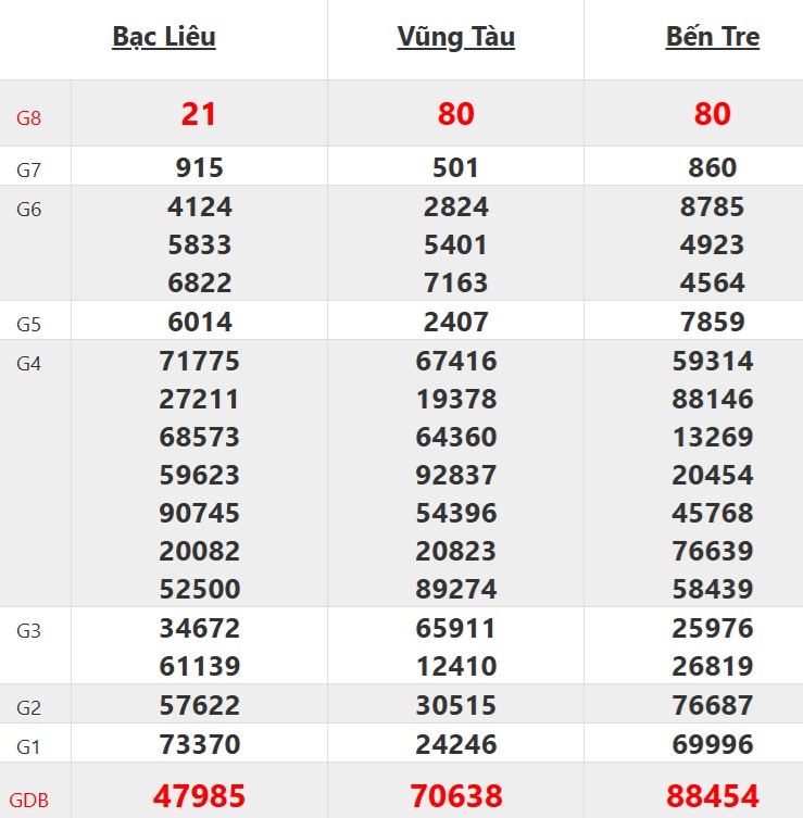 Dự đoán XSMN Thứ ba ngày 21/10/2025, 3 đài: Bạc Liêu, Vũng Tàu, Bến Tre