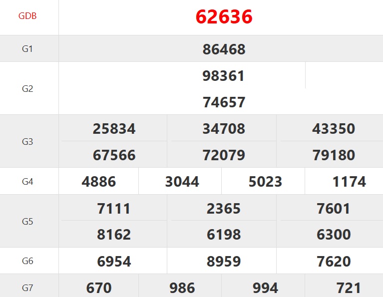 | Ngày | Giải ĐB | Ngày | Giải ĐB | Ngày | Giải ĐB |