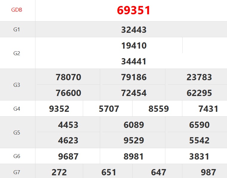 | Ngày | Giải ĐB | Ngày | Giải ĐB | Ngày | Giải ĐB |