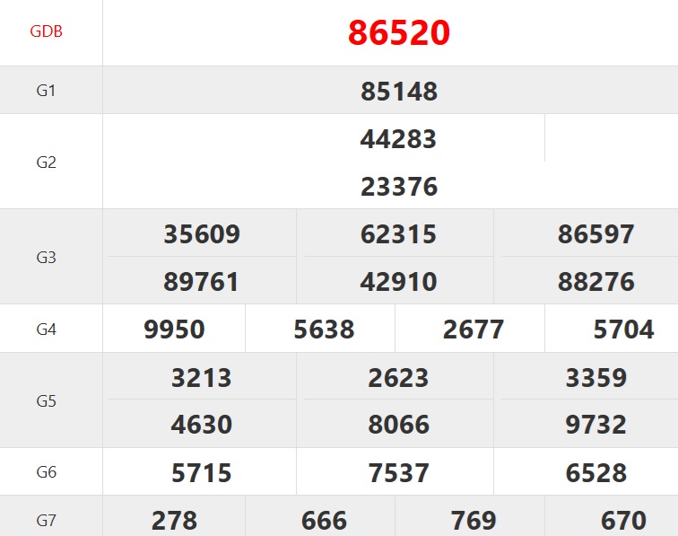 | Ngày | Giải ĐB | Ngày | Giải ĐB | Ngày | Giải ĐB |