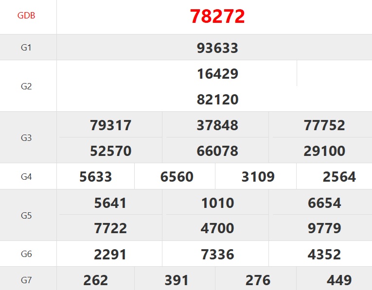 | Ngày | Giải ĐB | Ngày | Giải ĐB | Ngày | Giải ĐB |