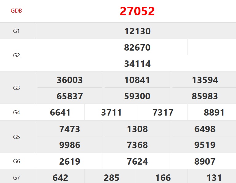 | Ngày | Giải ĐB | Ngày | Giải ĐB | Ngày | Giải ĐB |