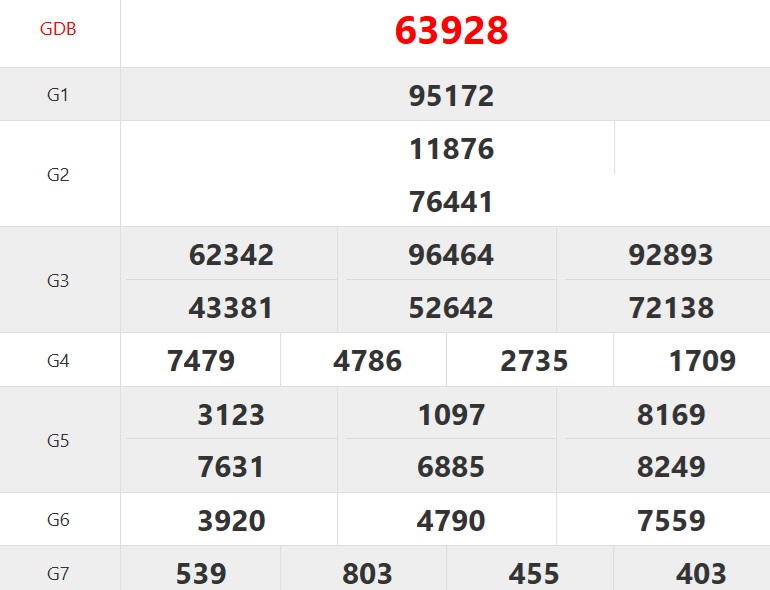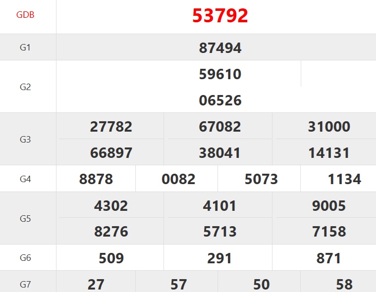 | Ngày | Giải ĐB | Ngày | Giải ĐB | Ngày | Giải ĐB |