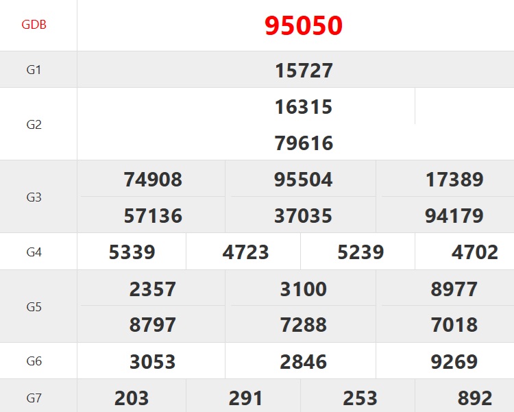 | Ngày | Giải ĐB | Ngày | Giải ĐB |