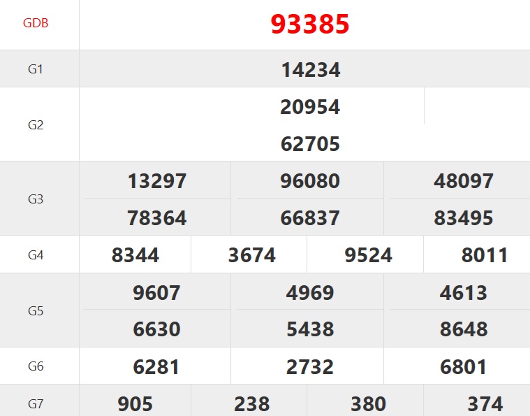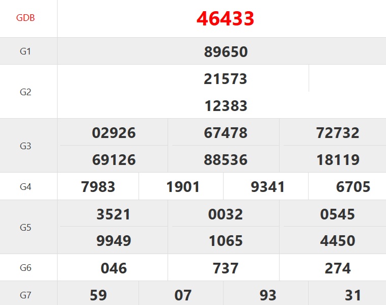 | Ngày | Giải ĐB | Ngày | Giải ĐB | Ngày | Giải ĐB |