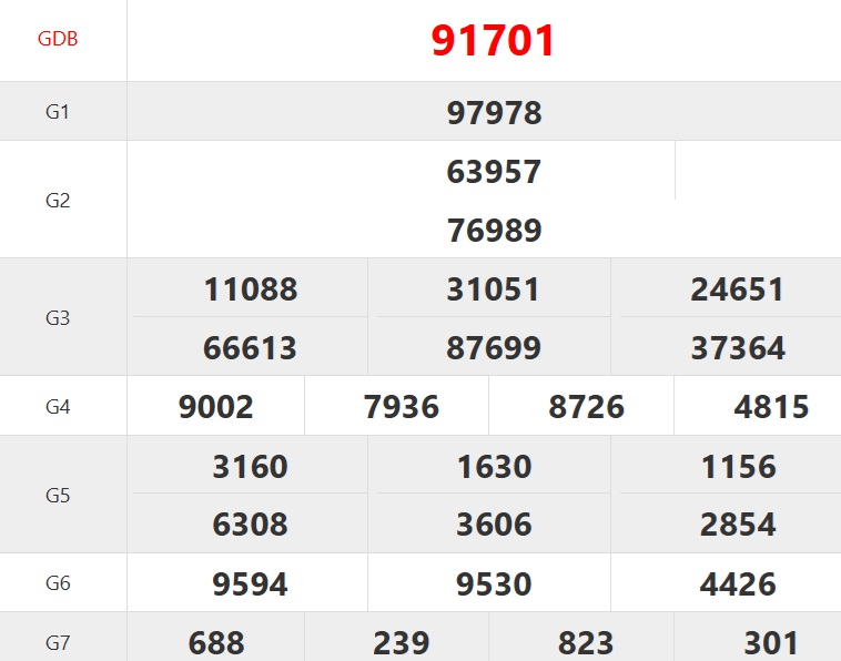 | Ngày | Giải ĐB | Ngày | Giải ĐB | Ngày | Giải ĐB |