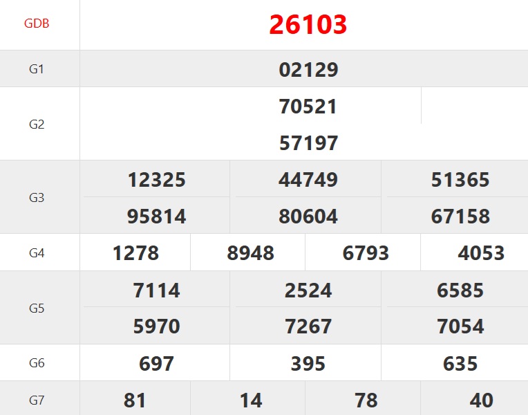 | Ngày | Giải ĐB | Ngày | Giải ĐB |