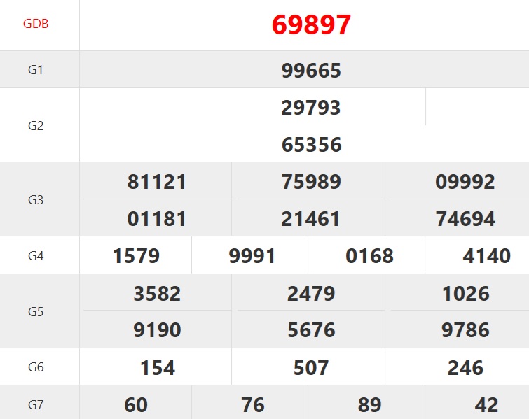 | Ngày | Giải ĐB | Ngày | Giải ĐB | Ngày | Giải ĐB |