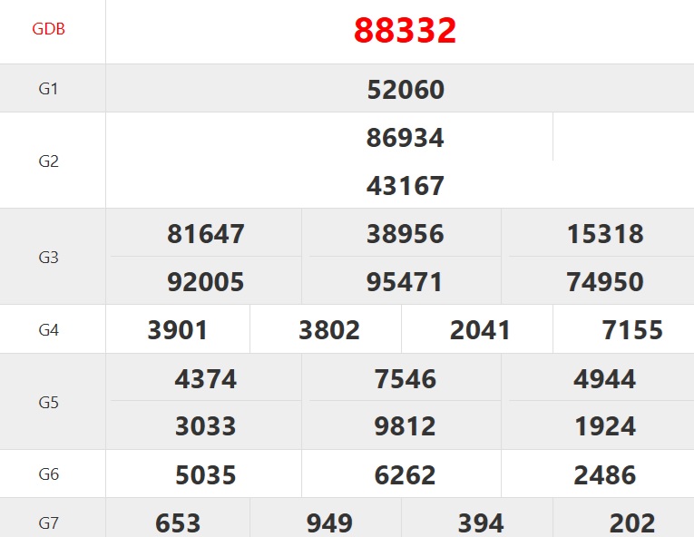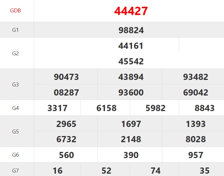 | Ngày | Giải ĐB | Ngày | Giải ĐB | Ngày | Giải ĐB |