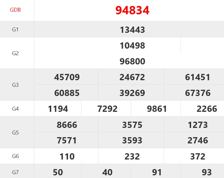 | Ngày | Giải ĐB | Ngày | Giải ĐB | Ngày | Giải ĐB |