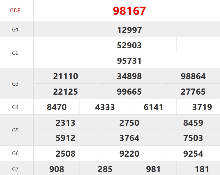 | Ngày | Giải ĐB | Ngày | Giải ĐB |