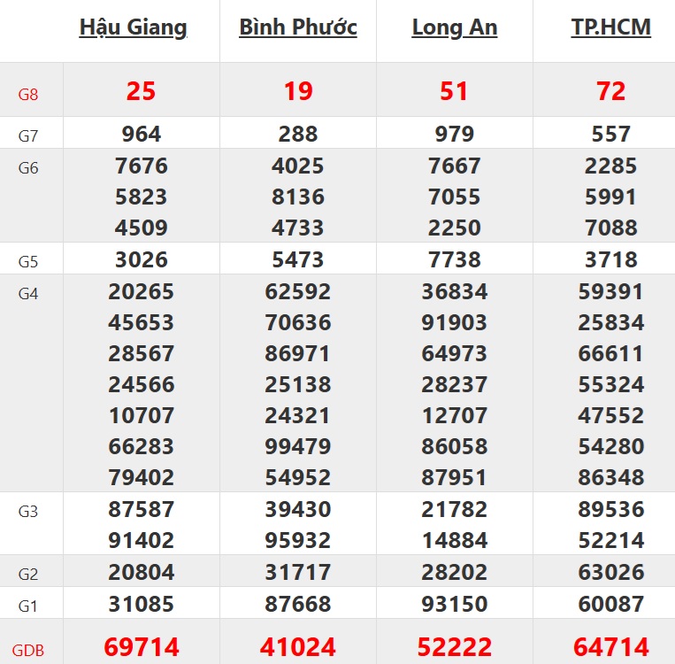 Dự đoán XSMN Thứ bảy ngày 13/12/2025, 4 đài: Hậu Giang, Bình Phước, Long An, TP Hồ Chí Minh