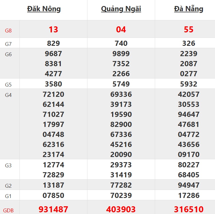 | 03/02 | Quảng Nam | 615038 |