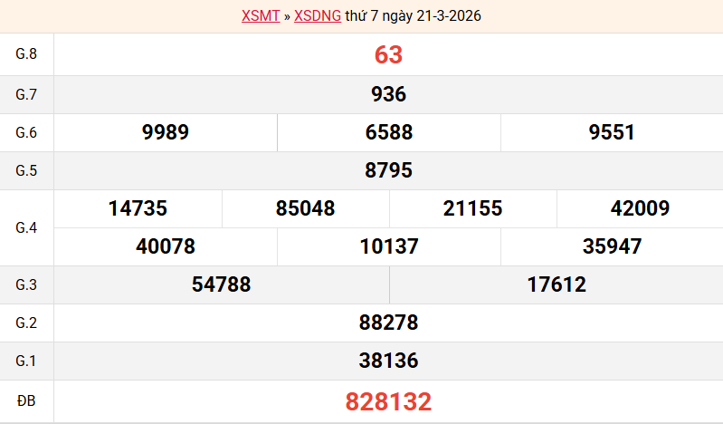 Bảng kết quả XSDNG ngày 21/03/2026 tuần trước