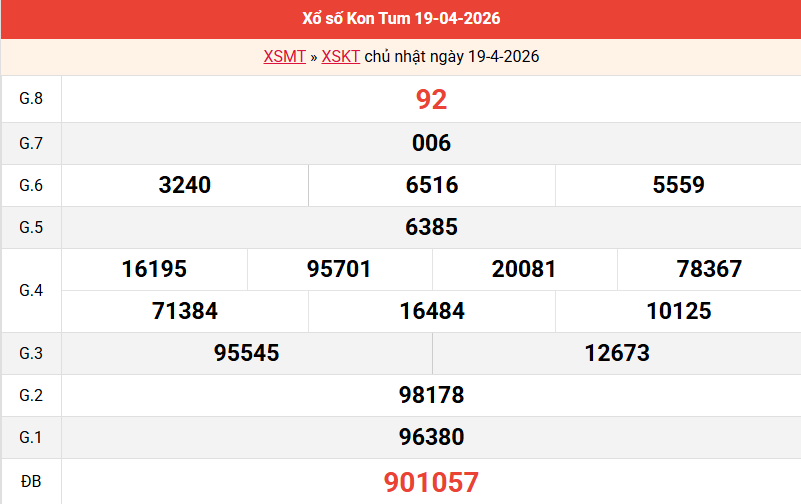Bảng kết quả Kon Tum ngày 19/04/2026 tuần trước