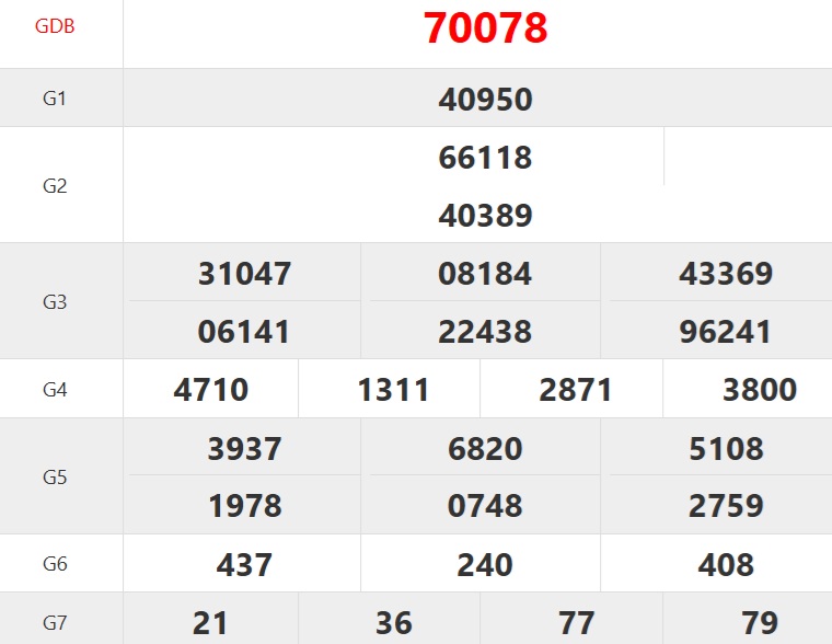 | Ngày | Giải ĐB | Ngày | Giải ĐB |