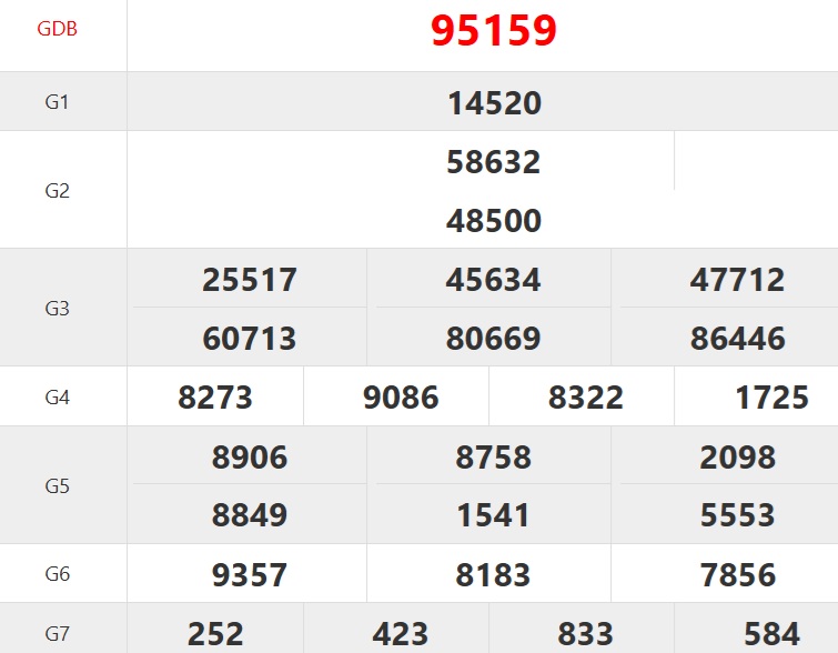 | Ngày | Giải ĐB | Ngày | Giải ĐB | Ngày | Giải ĐB |