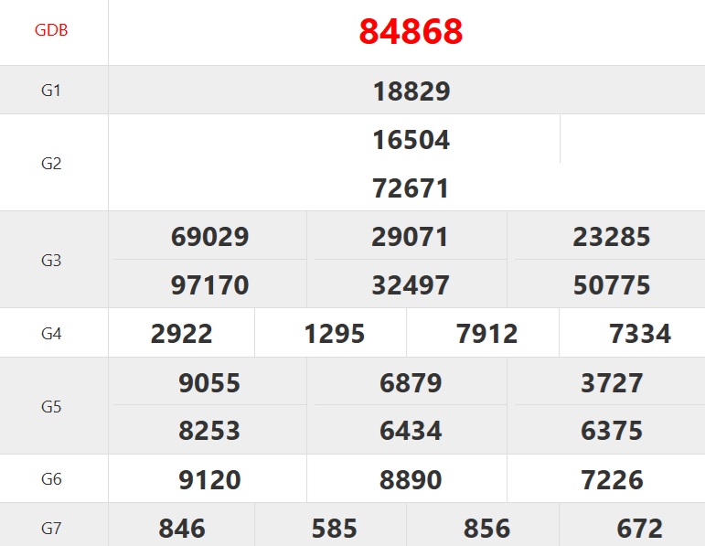 | Ngày | Giải ĐB | Ngày | Giải ĐB |