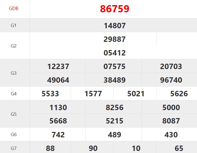 | Ngày | Giải ĐB | Ngày | Giải ĐB |