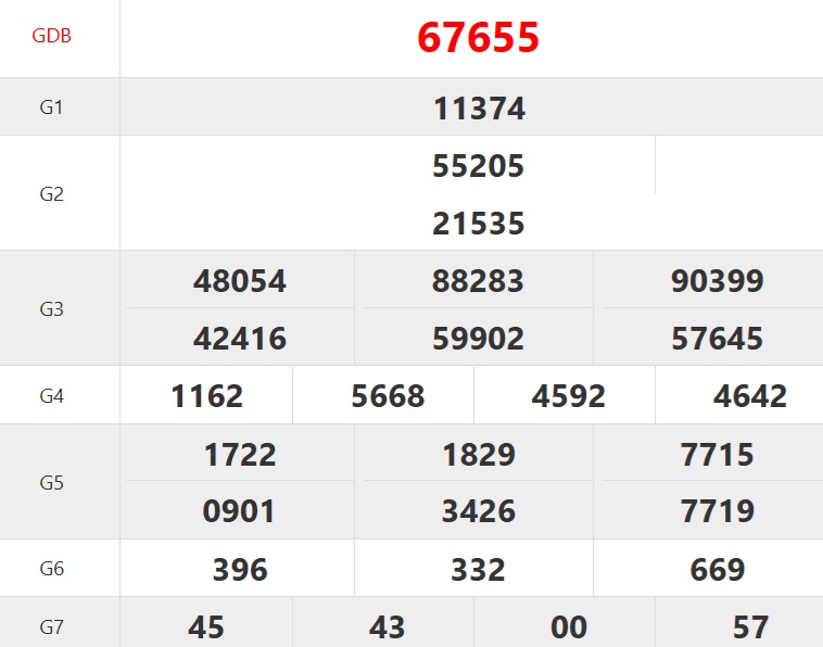| Ngày | Giải ĐB | Ngày | Giải ĐB |