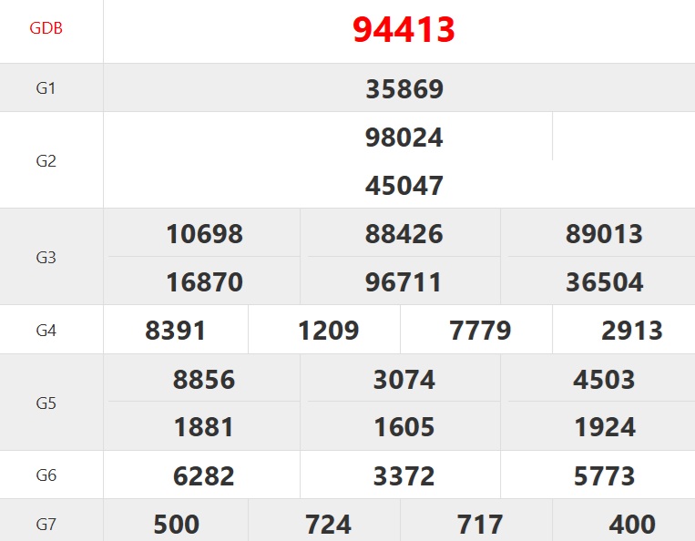 | Ngày | Giải ĐB | Ngày | Giải ĐB | Ngày | Giải ĐB |