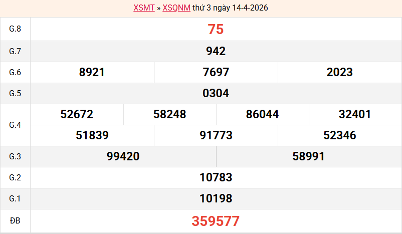 Bảng kết quả QNM ngày 14/04/2026 tuần trước