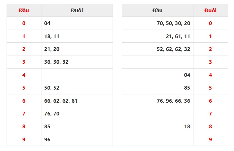 ⭐️ Đặc biệt: đầu, đuôi: 72 |