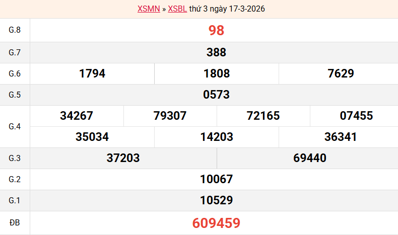 Bảng kết quả Bạc Liêu ngày 17/03/2026 tuần trước