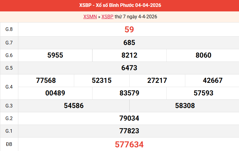 Bảng kết quả Bình Phước ngày 04/04/2026 tuần trước