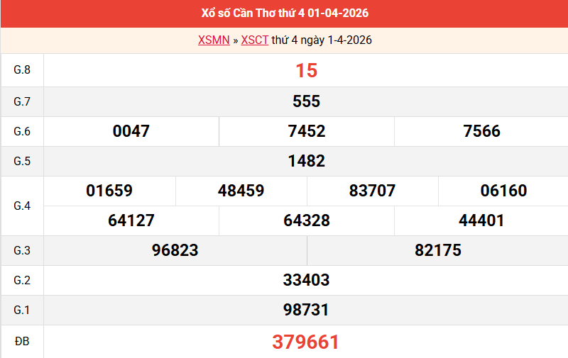 Bảng kết quả Cần Thơ ngày 01/04/2026 tuần trước