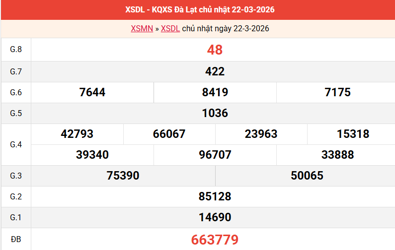 Bảng kết quả Đà Lạt ngày 22/03/2026 tuần trước
