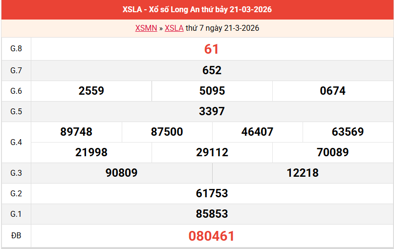 Bảng kết quả Long An 21/03/2026 tuần trước
